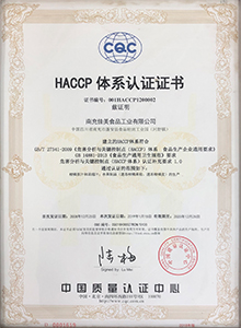 南充佳美于2008年按GB/T 27341-2009標(biāo)準(zhǔn)建立HACCP體系,同時取得HACCP 體系認(rèn)證證書