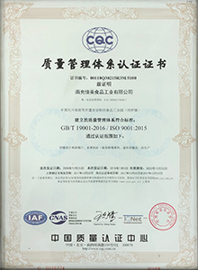 南充佳美于2008年按ISO 9000標(biāo)準(zhǔn)建立質(zhì)量管理體系,同時取得ISO 9001質(zhì)量體系認(rèn)證證書,并于2018年取得ISO 9001:2015質(zhì)量體系認(rèn)證證書。